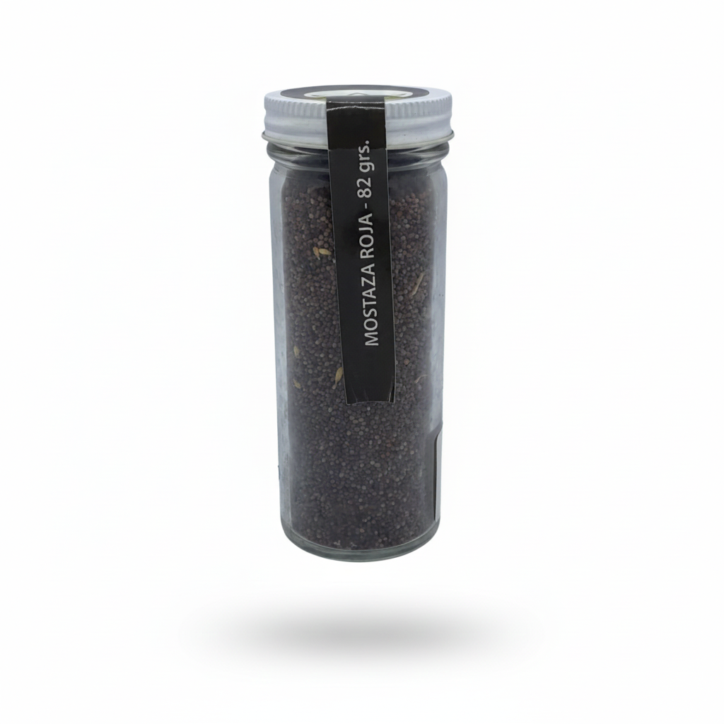 Frasco de mostaza roja entera deshidratada.